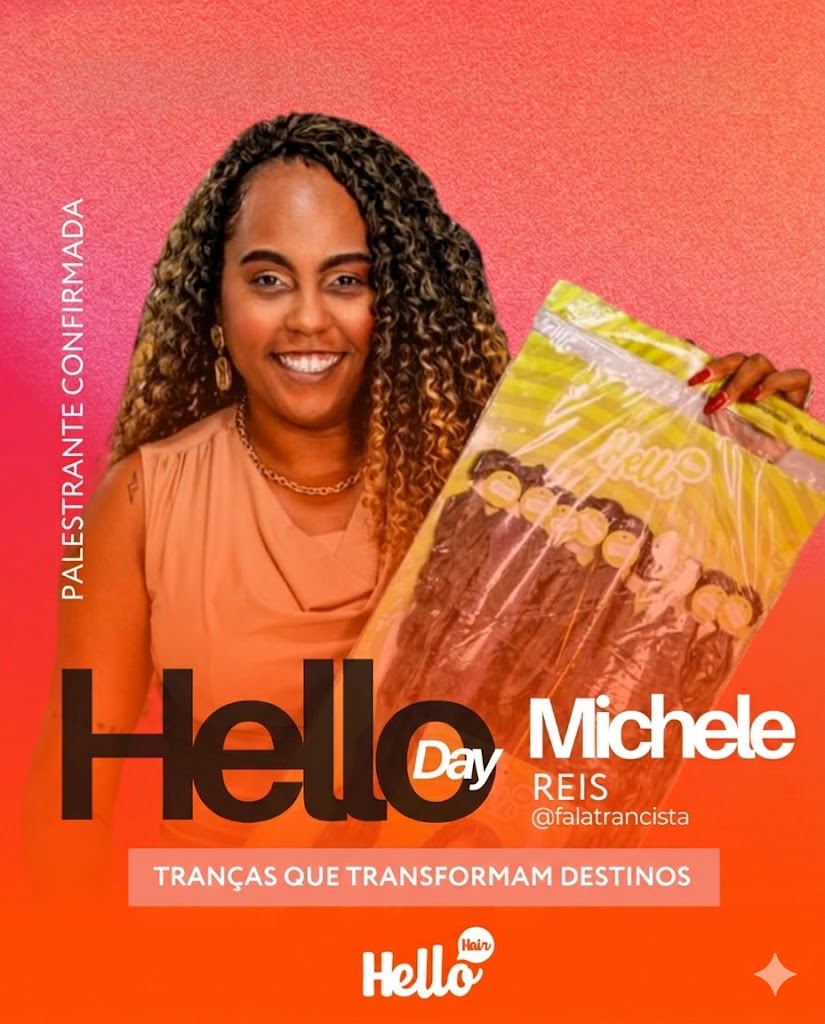 No dia 23 de março, das 13h às 20h, acontece o Hello Day — um encontro feito para quem não quer apenas fazer tranças… quer crescer, se posicionar e faturar de verdade.